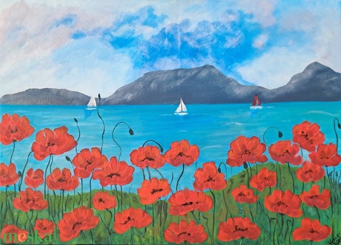 Pipacsos Balaton akril kép