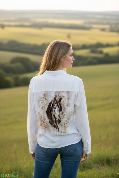 Kézzel festett nő lovas ing. Művészet amit viselhetsz.