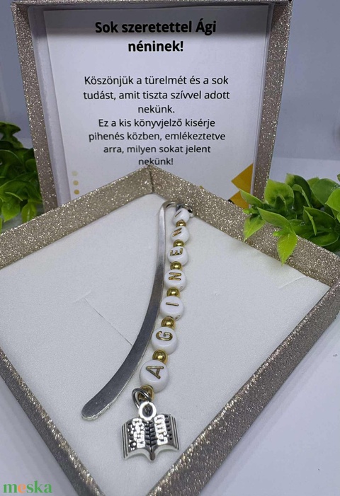 Személyre szóló Könyvjelző Díszbozban-Megható Ajándék Ági néninek/ Pedagogusoknak