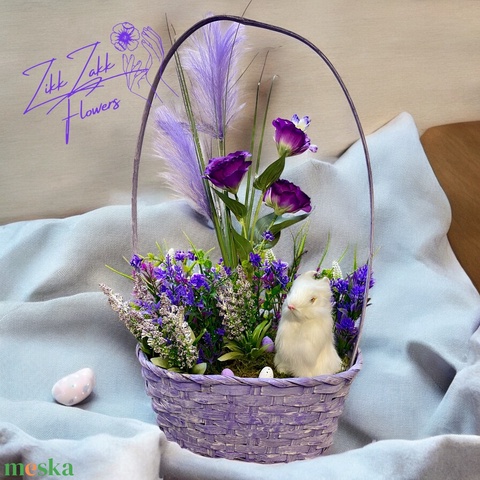 fonott kosár, nyuszi, örök virágok