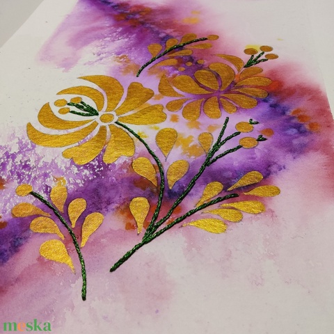 - Anyaga: akvarell karton, akvarell festék, hímzőfonal