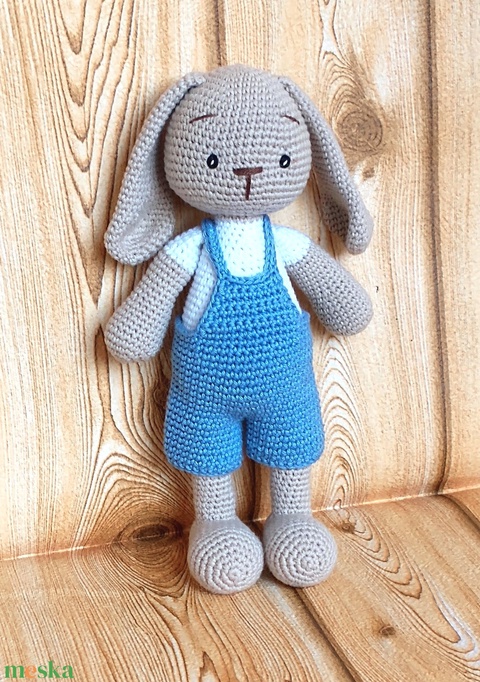 Nyuszi Dani - világoskék nadrágos - horgolt figura