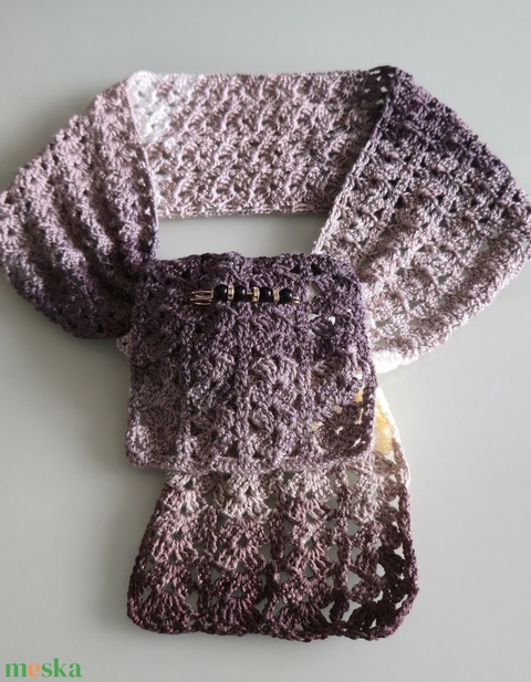 - Anyaga: horgolofonál, bross
