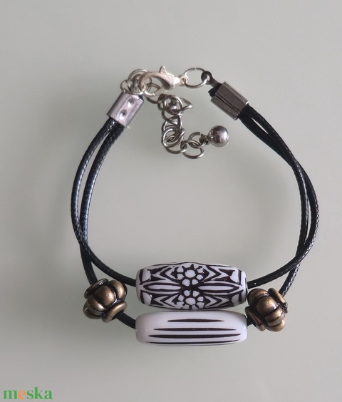 - Anyaga: bőrszál, gyöngy, szerelékek