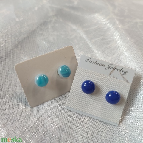 Türkiz és sötétkék antiallergén üvegékszer pötty fülik
