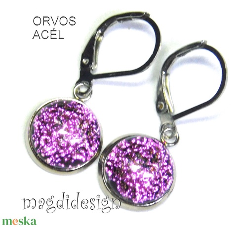 Szikrázó rózsaszín dichroic üvegékszer lógós fülbevaló