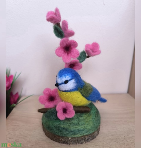 Cinege virágzó faágon - asztaldísz