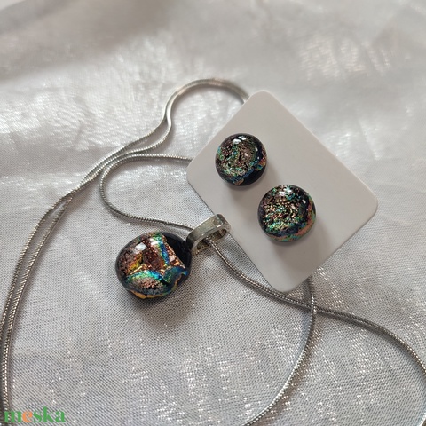Csillogó színjátszó dichroic antiallergén üvegékszer, pötty füli és medál