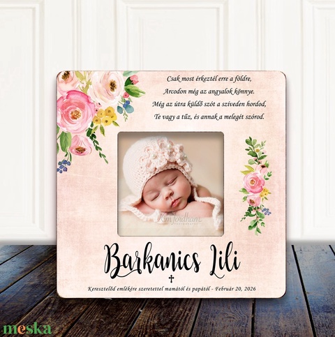 baba - mama, keresztelő kellékek, keresztelőajándékok, fényképkeret, gyerekfotó, fényképes, újszülött, egyedi, minimal, kisfiú, névreszóló, személyes, elegáns, emlék, kislány, keresztény, vallásos, keresztszülő, gyerek, dekor, gyerekszoba, idézet, biblia, vadvirág, virágos, aranyos