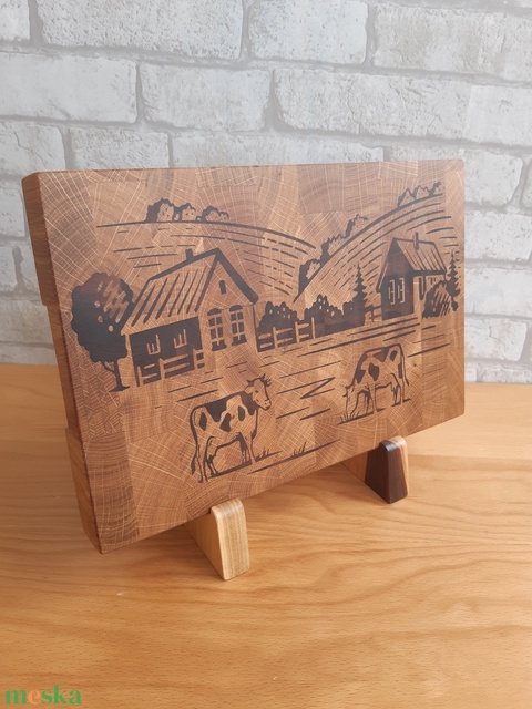 Tehenek a tanyán - bütüs vágódeszka valódi fa betéttel