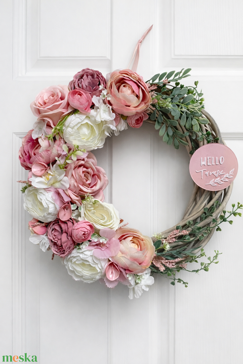 Tavaszi ajtódísz 35 cm-es pasztell rózsaszín