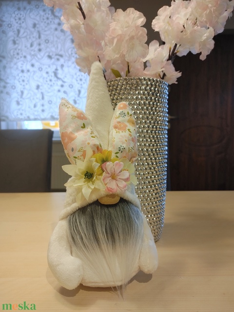 Kézzel varrt, kézműves húsvéti nyuszi manó. Plüssből készült. Magasság: 29cm