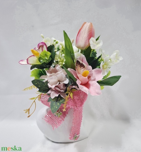 Szív kerámia kaspó, csokor, box, asztaldísz