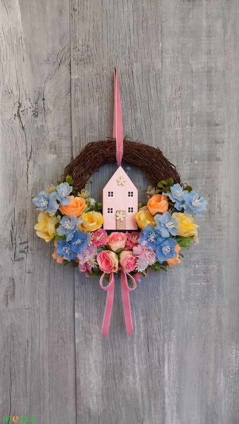 Virágos Házikó Kopogtat- /Tavasz Ajtódísz/Virágos Kopogtató/ Tavaszi Kopogtató /Ajtódísz /Falidísz/Koszorú