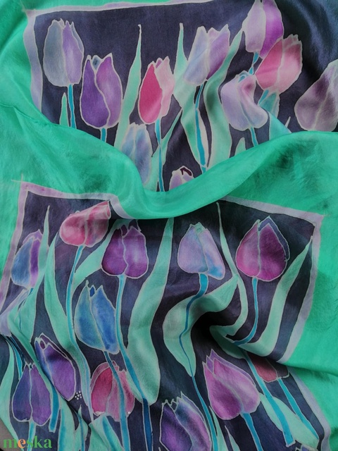 Kézi festésű valódi selyemsál-Lila tulipánok