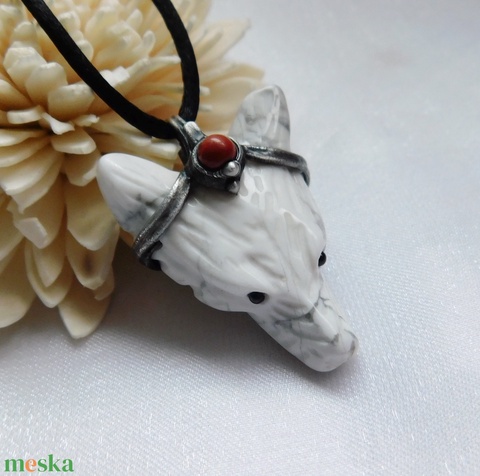 Howlit farkas medál vörös jáspissal