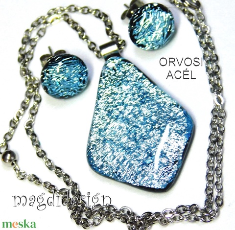 Szikrázó ezüst üvegékszer szett nyaklánc stiftes fülbevaló