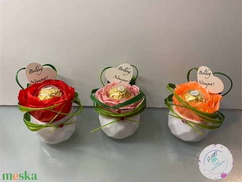 - Anyaga: műanyag kaspó, szatén szalag, ferrero roscher csoki, mű zöld kiegészítő