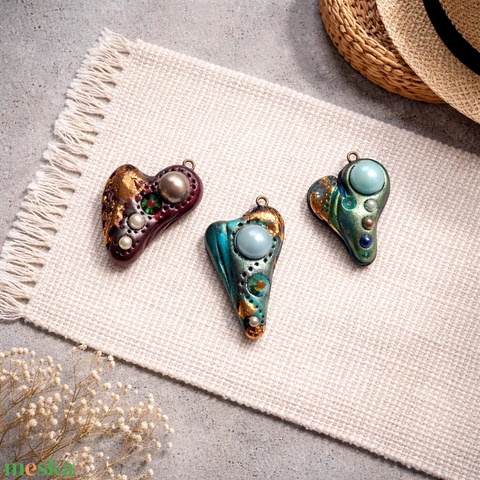 - Anyaga: polymer gyurma (ékszergyurma), mica por, ékkövek, akasztó, akrilfesték, uv gyanta, lánc, szerelék, akril félgyöngyök, medálvezető