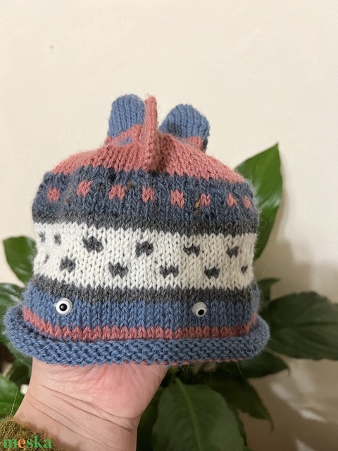 Kötött baba sapka – halacska, természetes fonalból 44-46 cm