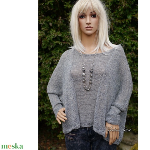 OPALMOON / alpaka silk - exkluzív kézzel kötött finom selyem pulóver / szürke KÉSZLETEN