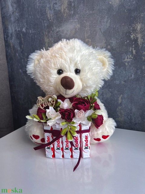 - Anyag/Összetevő művirág, plüssmackó, csokoládé