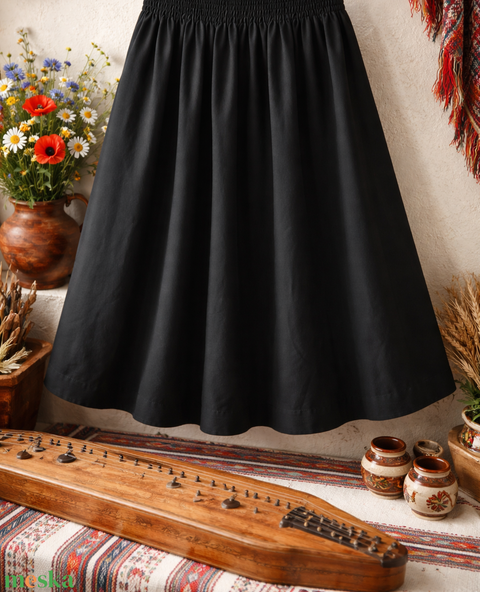 Fekete színű, extra pörgős néptánc szoknya 50 cm