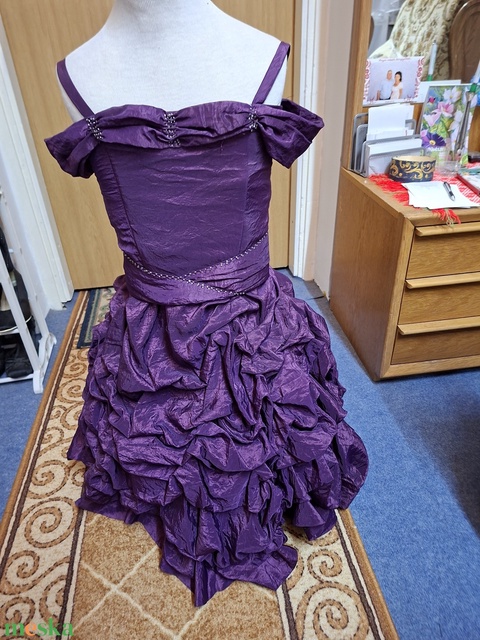 Lila raffolt taft, koszorúslány, alkalmi gyerek ruha.