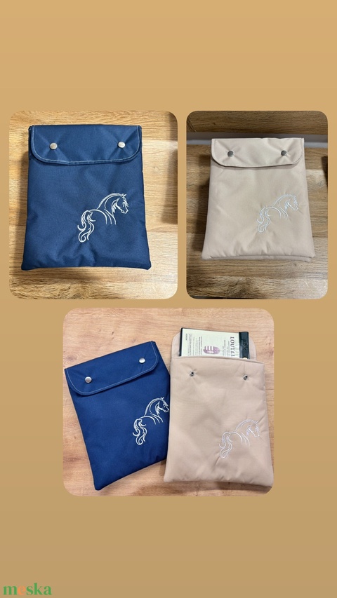 Kézműves, vízálló anyagból készült lóútlevél tartók készletről vihetőek, 5.800 Ft/db áron.