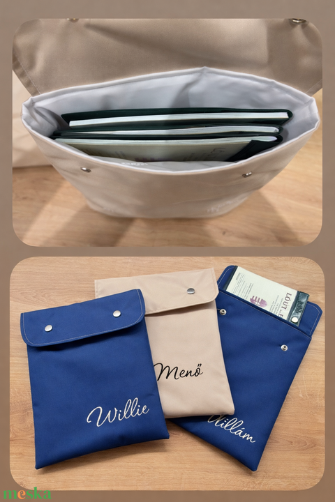 A kész termék mérete kb. 21x25 cm, kényelmesen tárolható benne több db útlevél is.