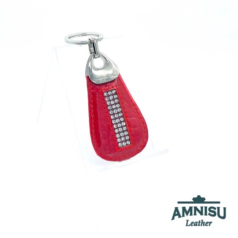 Piros lakk krokkómintás csepp alakú kristály köves kulcstartó H5008
