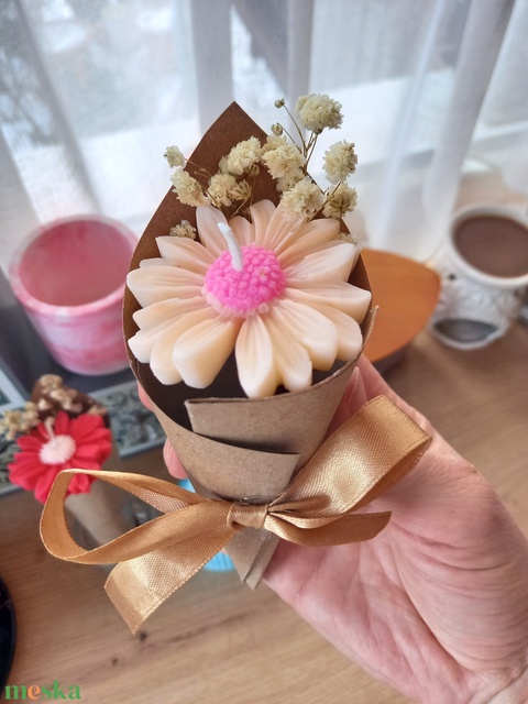 🎁 Szójaviaszgyertya – virágszál díszcsomagban