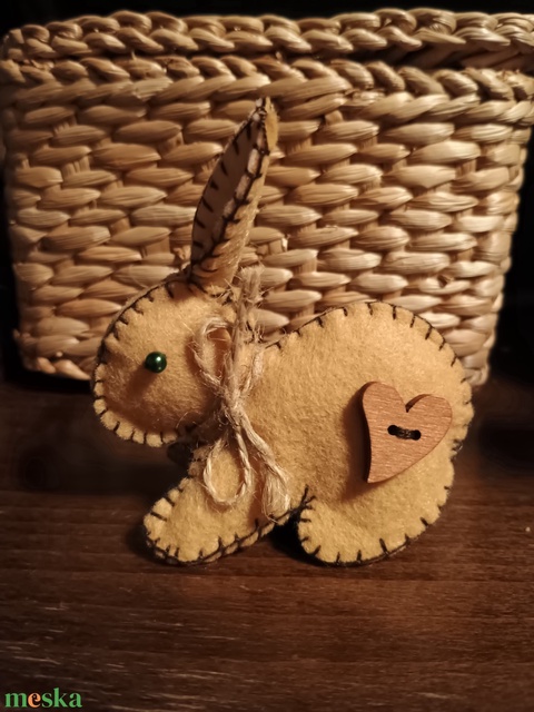 otthon & életmód, dekoráció, dísztárgy, nyúl, nyuszi, filc, szív, valentinnap, barna