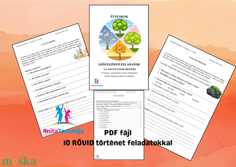A „Szövegértő feladatok- Évszakok” csomag egy gondosan összeállított, nyomtatható PDF, amely 10 egyedi történetet, hozzájuk kapcsolódó kérdéssorokat, feladatokat tartalmaz. A terméket digitálisan kapod meg e-mailben, és otthon tudod kinyomtatni, többször felhasználni.