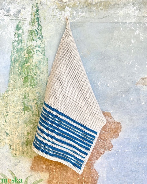 Kék csíkos horgolt kéztörlő