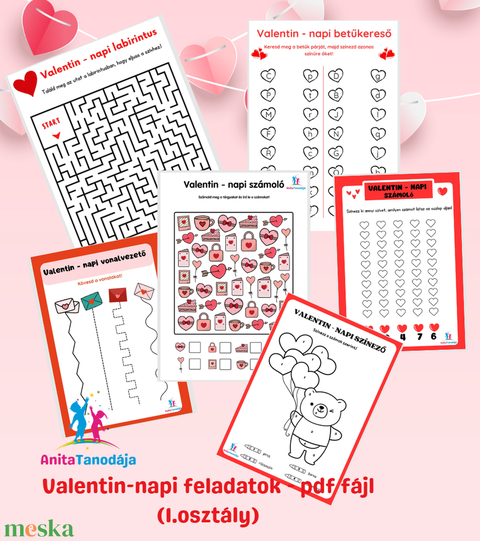 Ez a különleges Valentin‑napi oktatási csomag tökéletes választás óvodásoknak és kisiskolásoknak (1. osztály), pedagógusoknak, fejlesztőpedagógusoknak és szülőknek, akik szeretnék játékosan fejleszteni a gyerekeket. A PDF fájlokat fizetés után e-mailben küldöm.