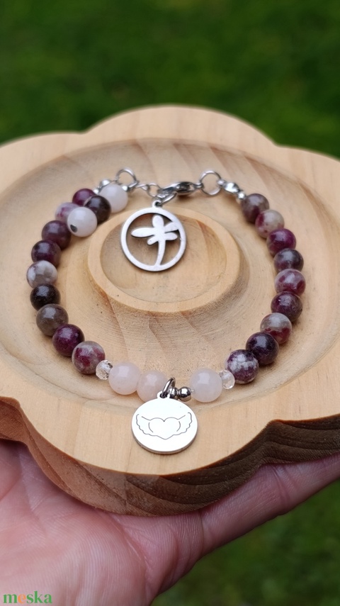 Turmalin rubellit, morganit és hegyikristály karkötő az érzelmi egyensúlyért