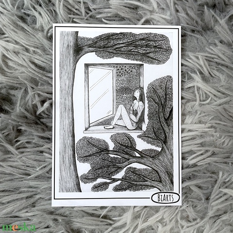 Ablakban ülő lány képeslap