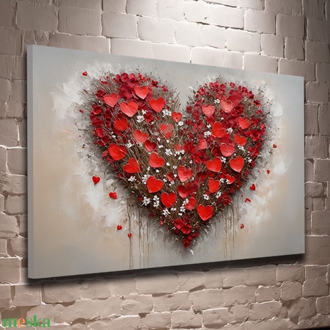 Szív alakú virágkompozíció falikép - Vászonkép 60x40 cm - Valentin napi akció!