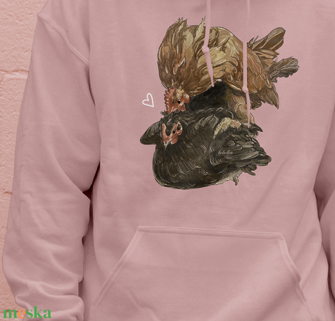 Pamut kapucnis pulóver szerelmes tyúkos mintával