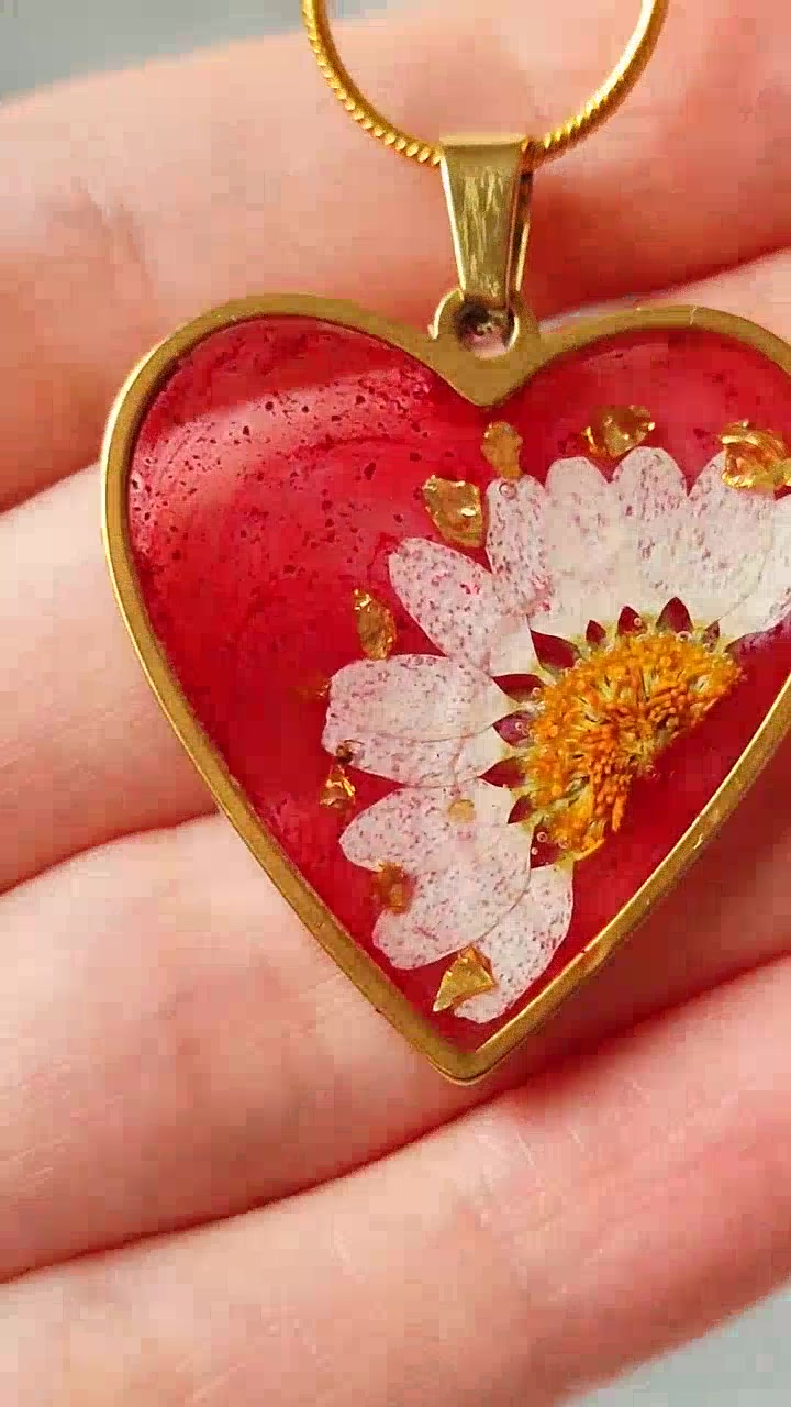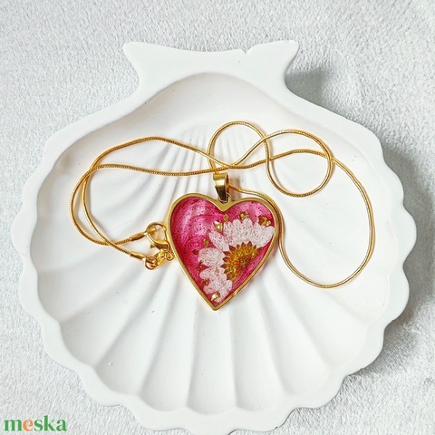 - Anyaga: epoxi gyanta, préselt virág, 18k arannyal bevont nemesacél, rozsamentes acél