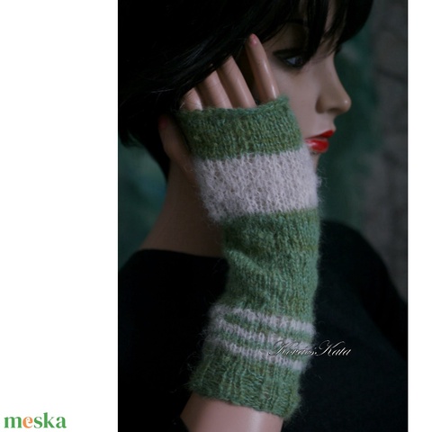 PILLE KESZTYŰ / suri alpaka - exkluzív kézzel kötött kesztyűszár, kézmelegítő / zöld+homok KÉSZLETEN