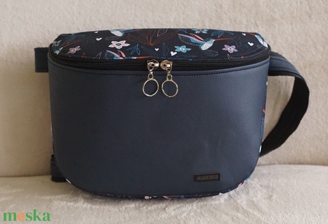 Oldaltáska gránitkék-kolibri mintás