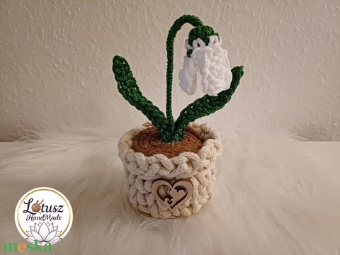 otthon & életmód, virágdekoráció, virágdíszek, asztali virágdísz, horgolt, hóvirág, kaspó