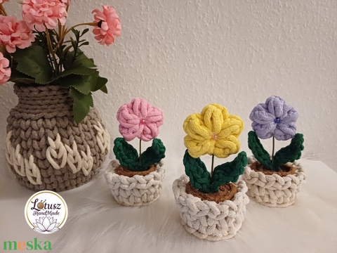 Horgolt virág kaspóban