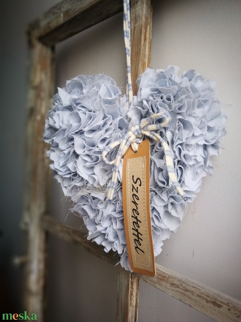 Textilszálas szív dekoráció, köszönőajándék - világoskék színben