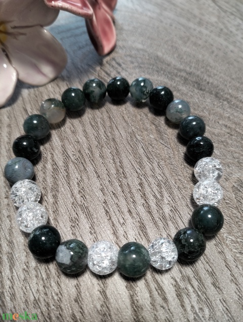 Női Ásványkarkötő - Roppantott hegyikristály + Mohaachát