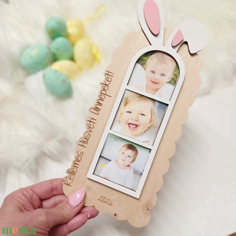 „Kellemes húsvéti ünnepeket!” Nyuszifüles húsvéti fa képtartó babafotóknak
