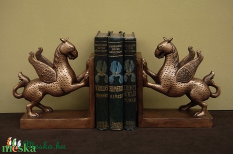 Bronzírozott Griff könyvtámasz pár, szobor