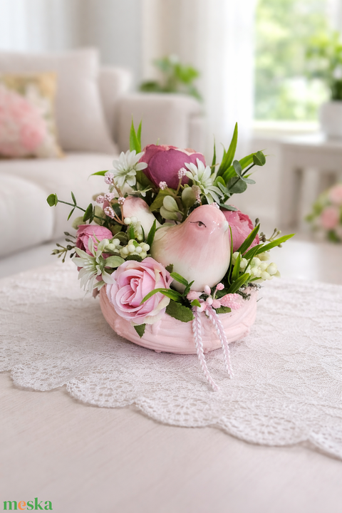 Tavaszi asztaldísz kerámia madárkával